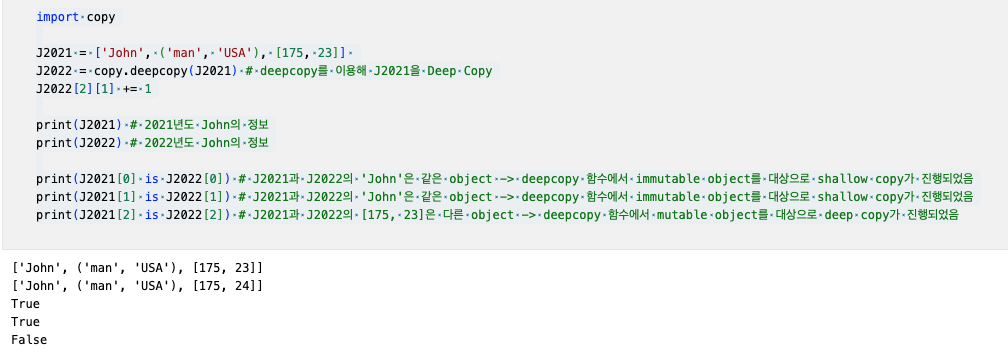 단, mutable object에 대해서는 deepcopy를 사용해야 프로그래밍 의도에 맞게 안전하게 복사할 수 있다.