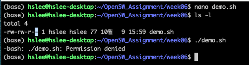user에 대한 실행 권한이 없어서 demo.sh를 실행할 수 없음.