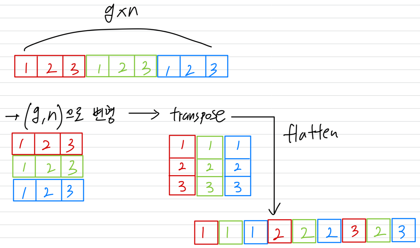 이 특성은 channel group 간 information flow를 차단하고 representation 능력을 약화시킨다.