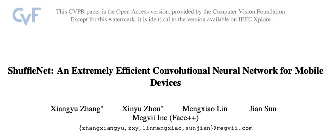 ShuffleNet은 mobile devices with very limited computing power를 위해 설계되었다.