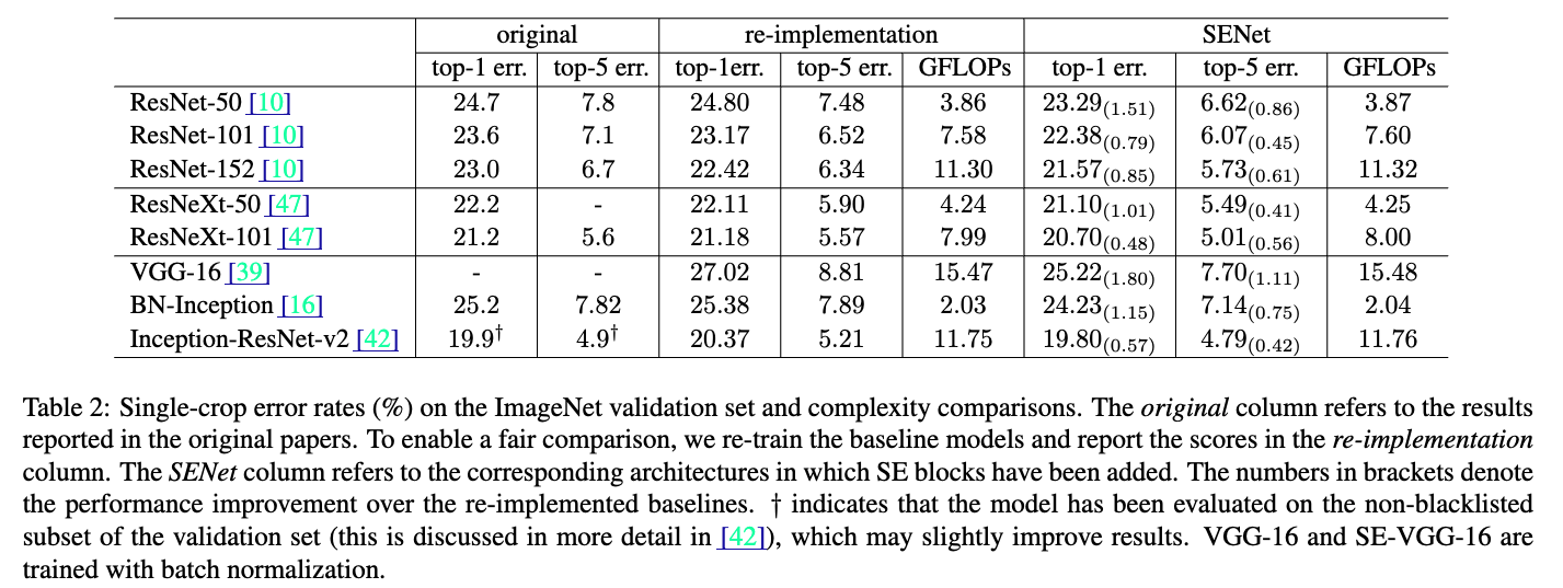 뭐 그래도 단순히 layer를 증가시키는 것보다 SE block에 대한 ablation study는 보여주었다.