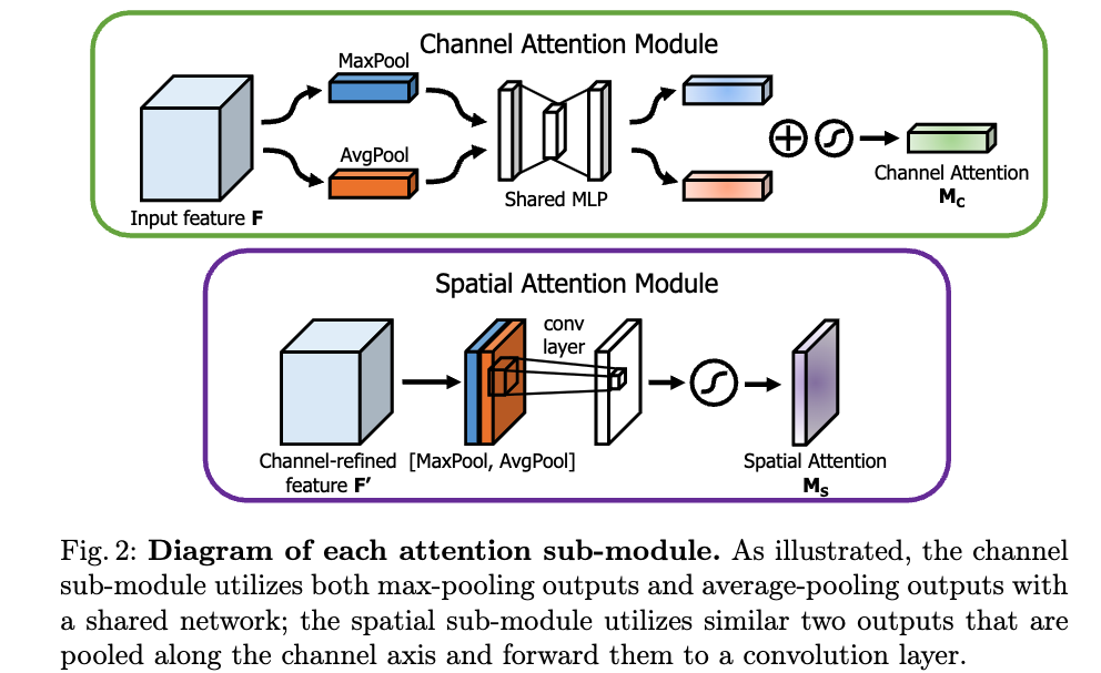 Given an input image, two attention modules, channel and spatial, compute complementary attention,