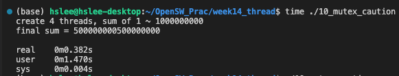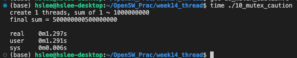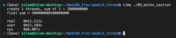 local variable에 값을 누적해서 최종적으로 global variable sum에 더해주는 딱 한 순간만 mutex를 호출하면 된다.