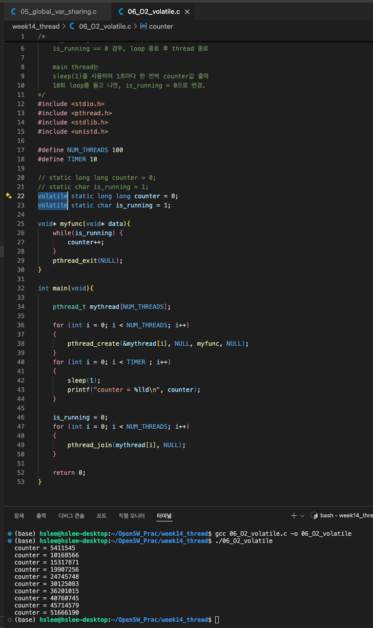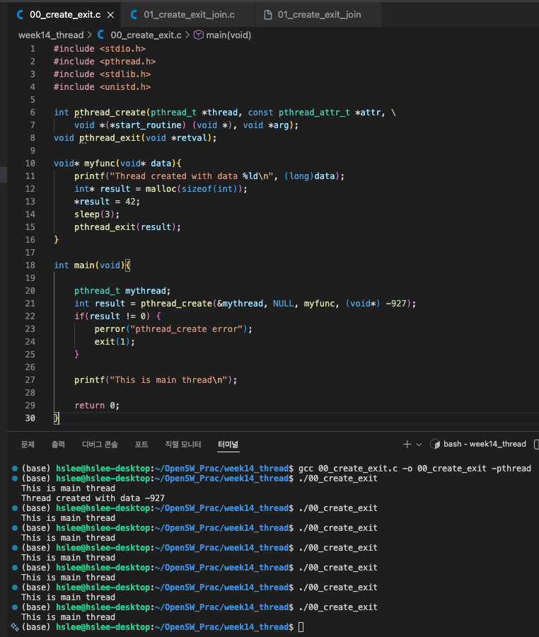 gcc -o <threaded_program.c> -pthread : "pthread library와 link하여 compile하라"