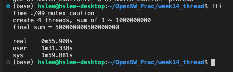 mutex는 kernel level에서 scheduling이 들어가기 때문에 엄청나게 느려진다.