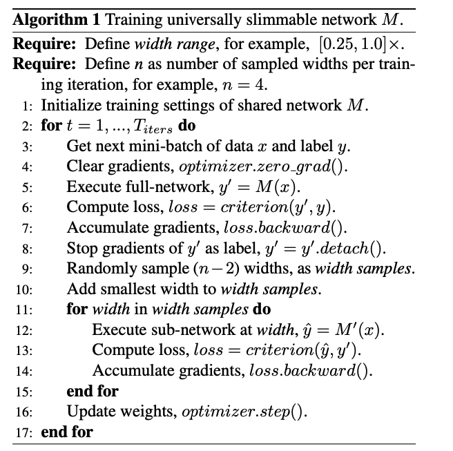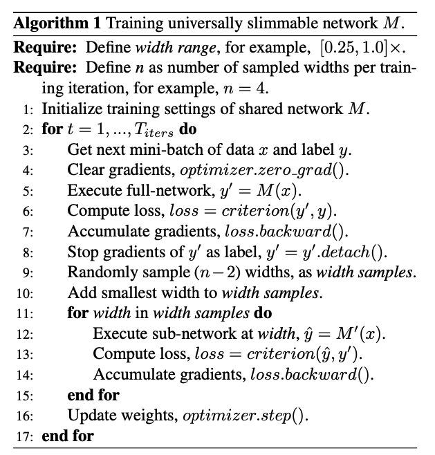 예를 들어, 각 training iteration에서 범위에서 개의 width를 무작위로 sampling하고,