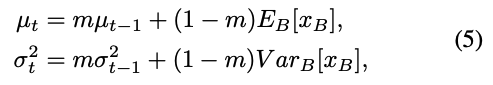 그리고나서 feature mean and variance 값은 moving averages로서 global statistic로 update된다 :