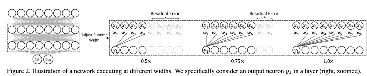 predefined widths set 중에서 선택하여 runtime에 accuracy-efficiency trade-offs를 optimize하도록 조정할 수 있다.