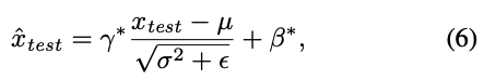 inference 중에는 다음과 같은 global statistics가 사용된다 : 와 는 optimized된 scale and bias이다.