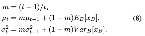 은 momentum (e.g. ), 는 the index of training iteration이다.