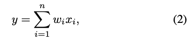 여기서 은 input neuron(또는 CNNs의 channels)의 수, 는 input neuron, 은 learnable coefficient, 는 single output neuron이다.