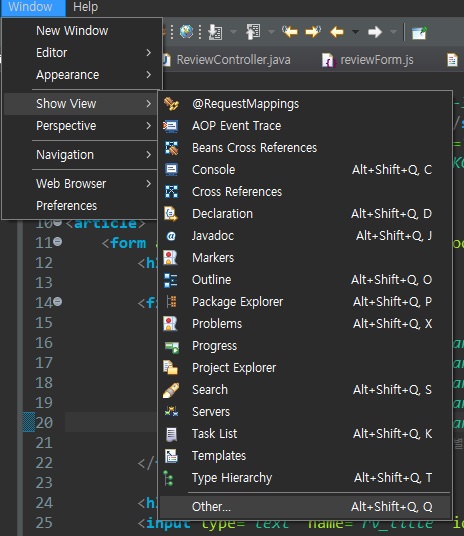 - 이클립스의 Window ▶ Show View ▶ Other 메뉴를 선택합니다.