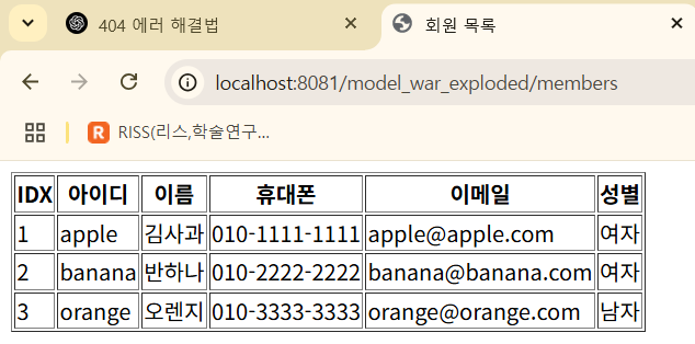 member 패키지 안에 있는 MemberServlet