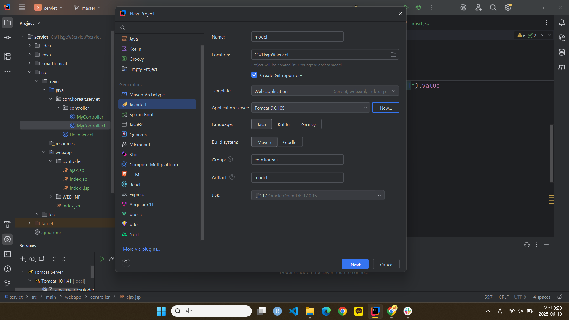 (처음에는 javax가 아닌 자카르타(?)라고 되어있었음. 이걸 javax로 수정)