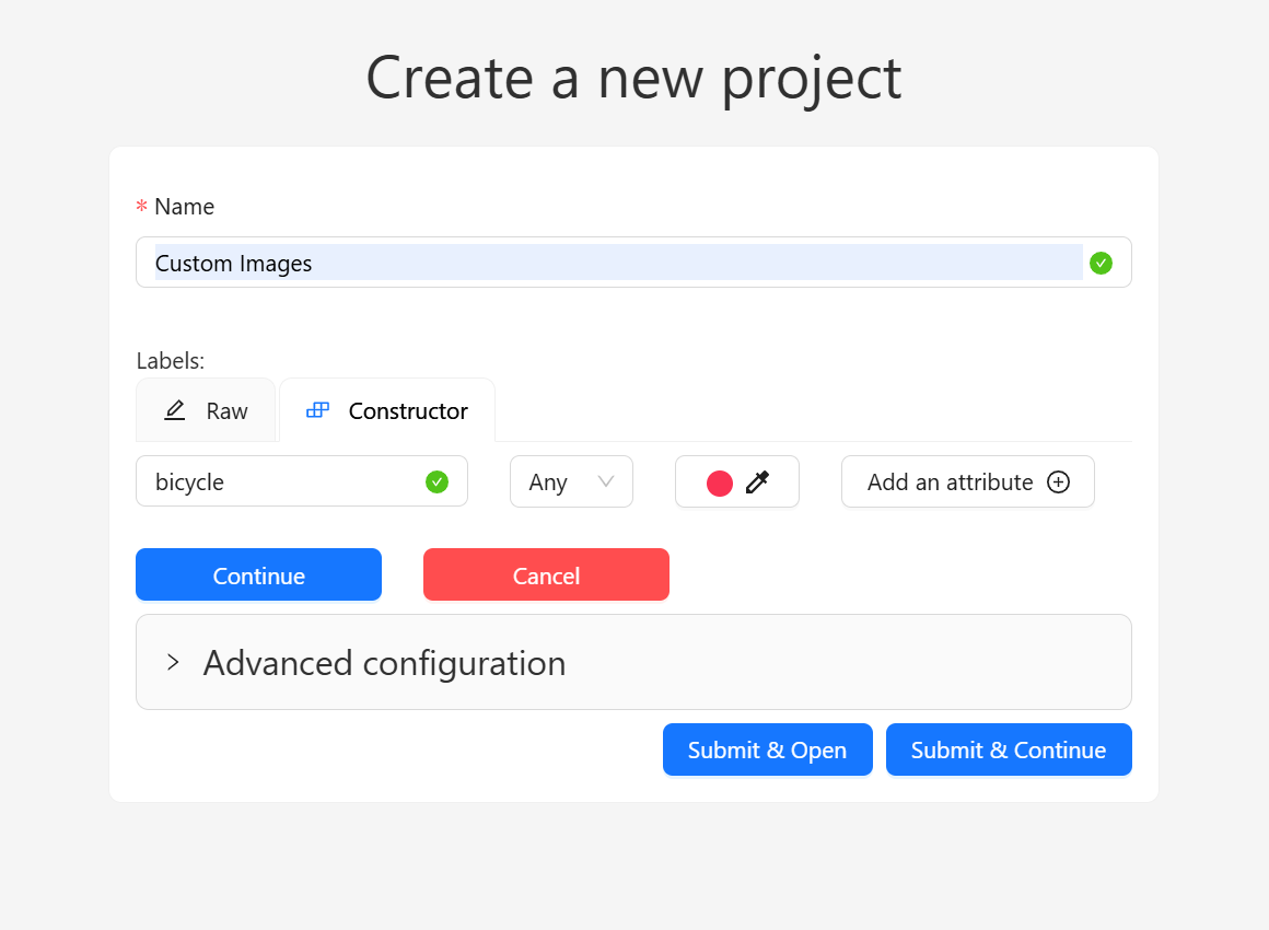 Project name 설정을 하고, 카테고리마다 원하는 색상과 이름을 지정한다.