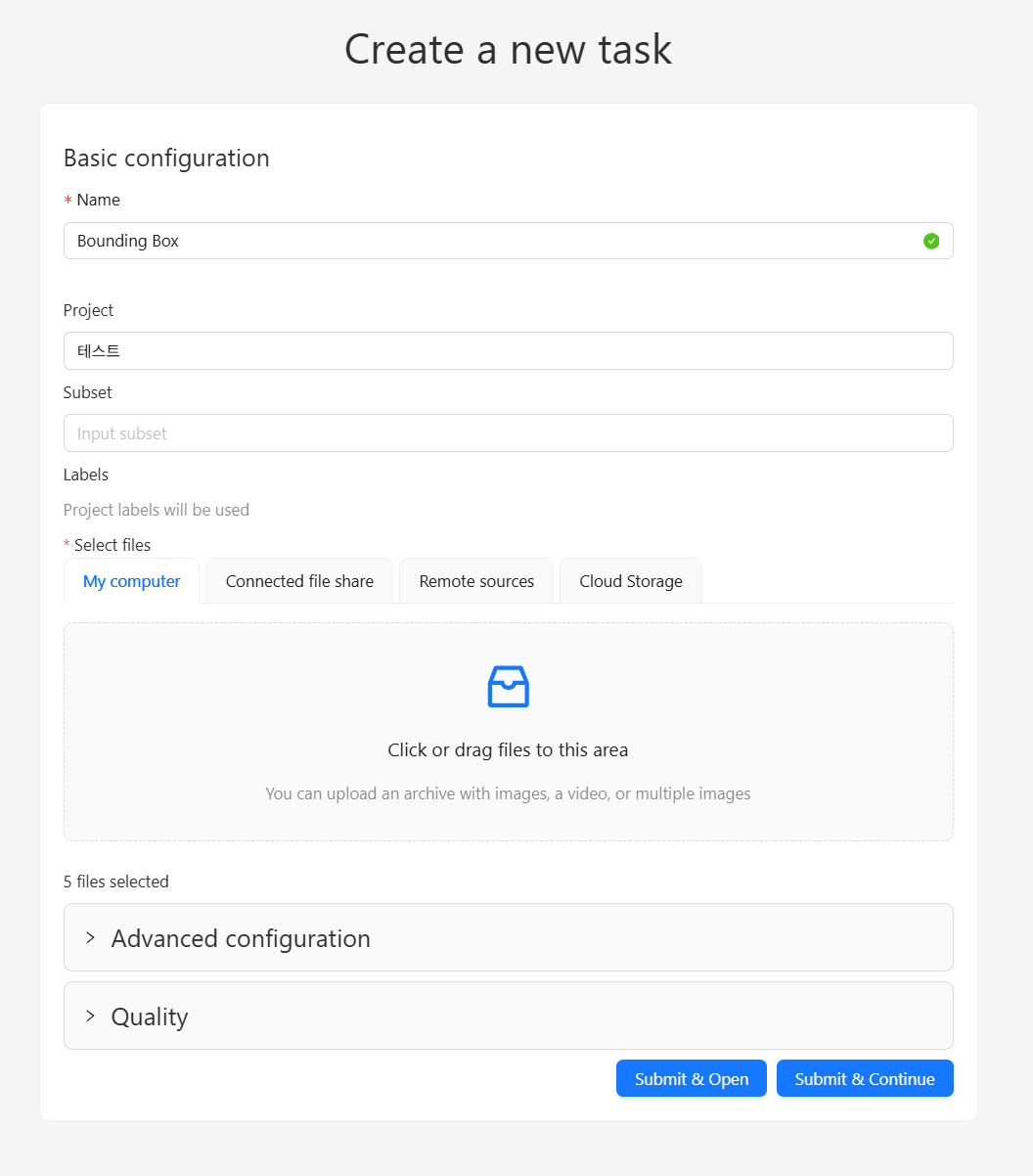 하나 끝날 때마다 Submit & Continue 버튼을 클릭하여 저장하면서 계속 진행한다.