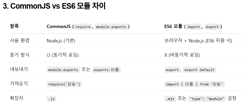 package.json에서 "type":"module"로 설정하면, ES6 모듈만 사용하게 된다.