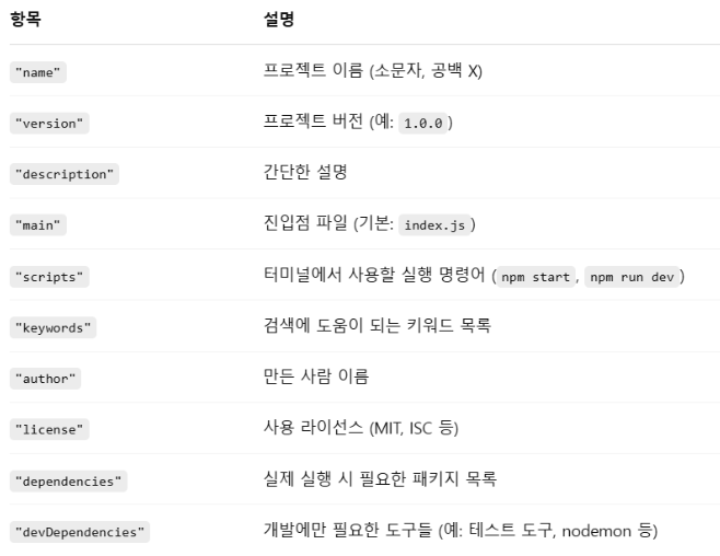 Node.js 프로젝트를 만들 때 npm init 명령어를 실행하면 이 파일이 자동으로 생성된다.