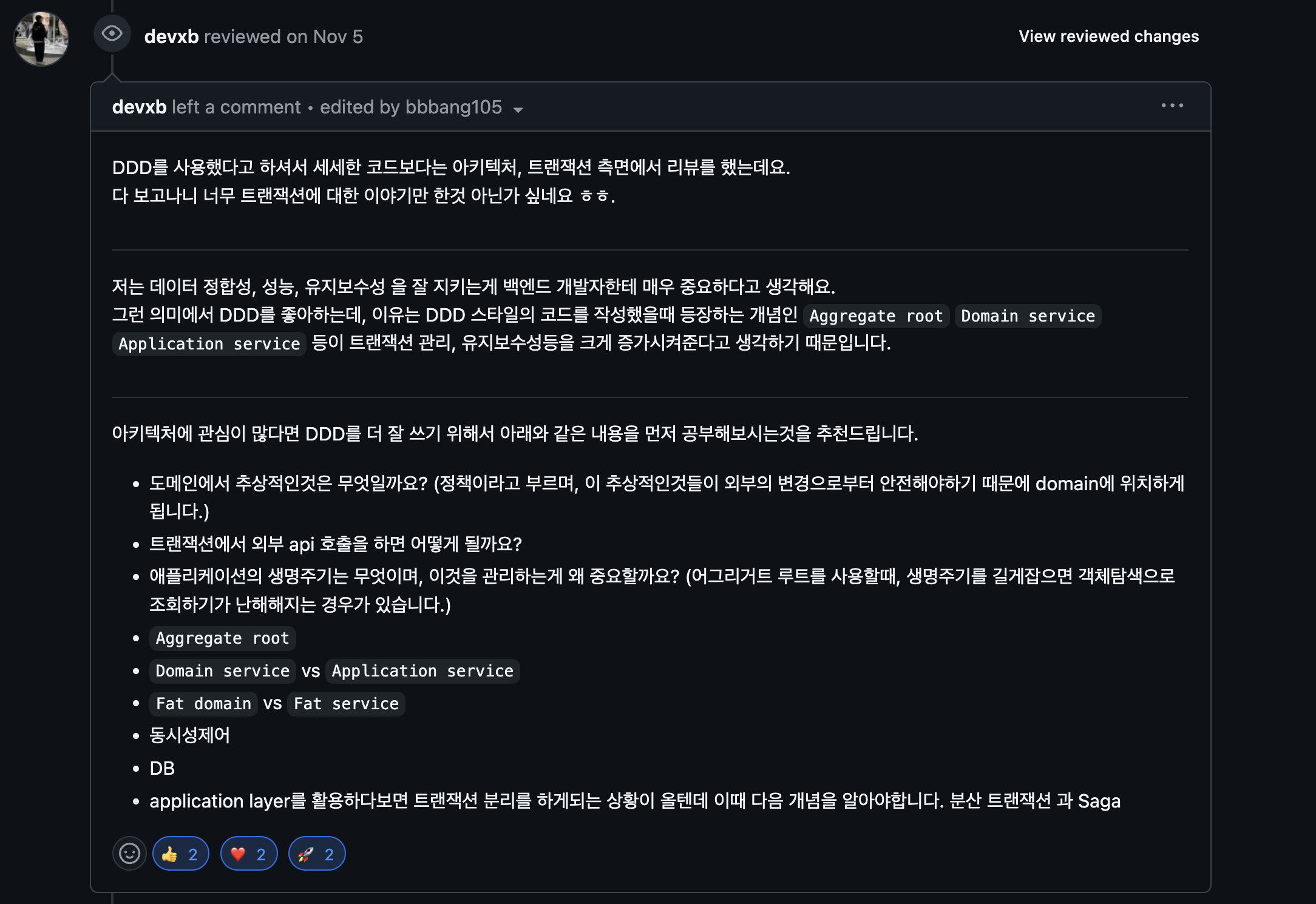 다음에 DDD를 적용할 때에는 학습을 좀 더 진행한 후에 제대로 해 보고 싶다!