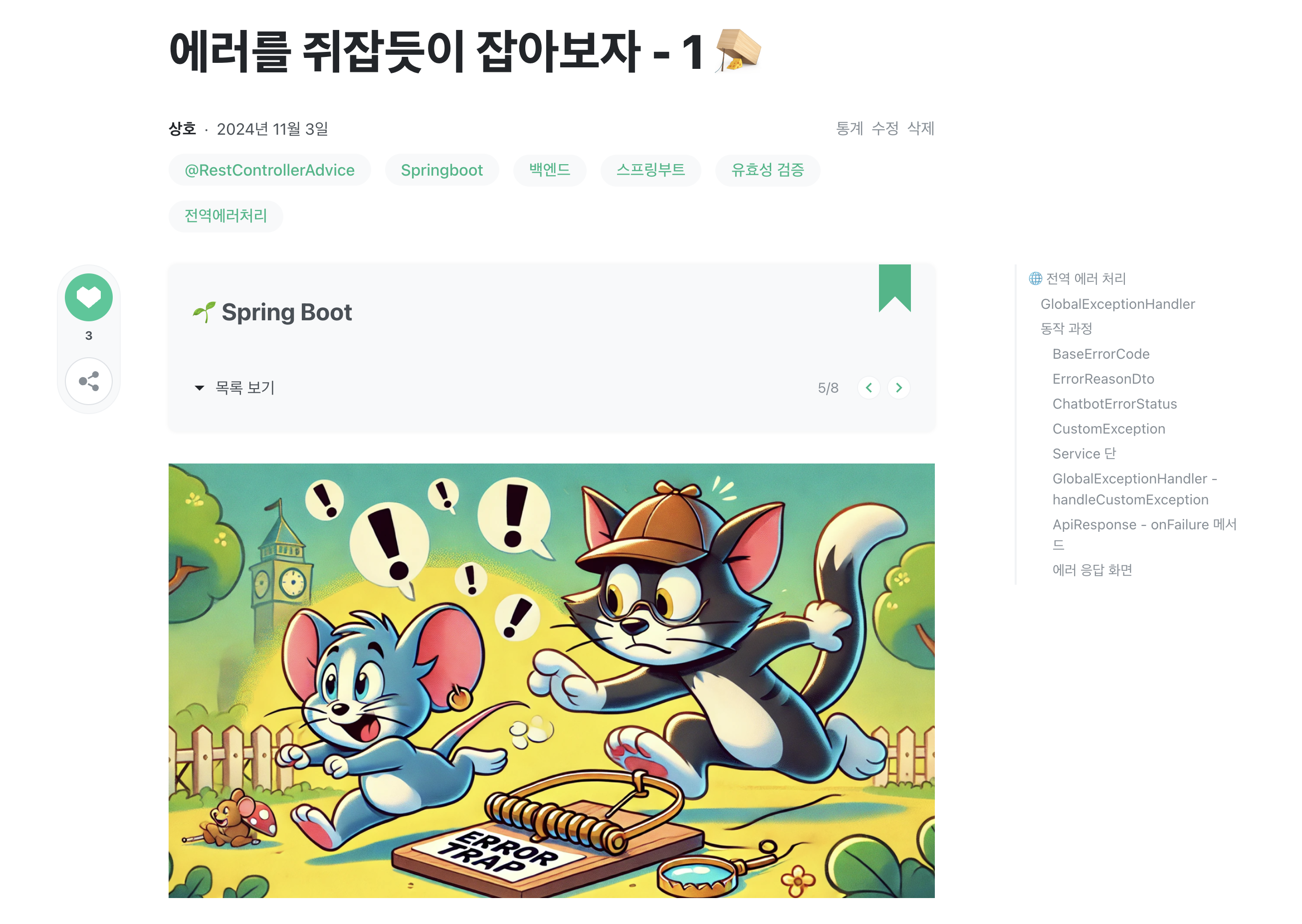기능을 빠르게 잘 찍어내는 것보다, 서비스를 운영하면서 필연적으로 생길 여러 문제들을 잘 해결할 수 있는 것이 개발자에게는 더 중요하다고 생각한다. 이를 위해서는 어느 지점 그리고 어떤 상황에서 문제가 생긴 것인지를 파악하는 것이 시간을 많이 단축시켜주는데, 에러 처리와 로깅이 잘 되어있다면 효율성이 많이 올라가게 된다.