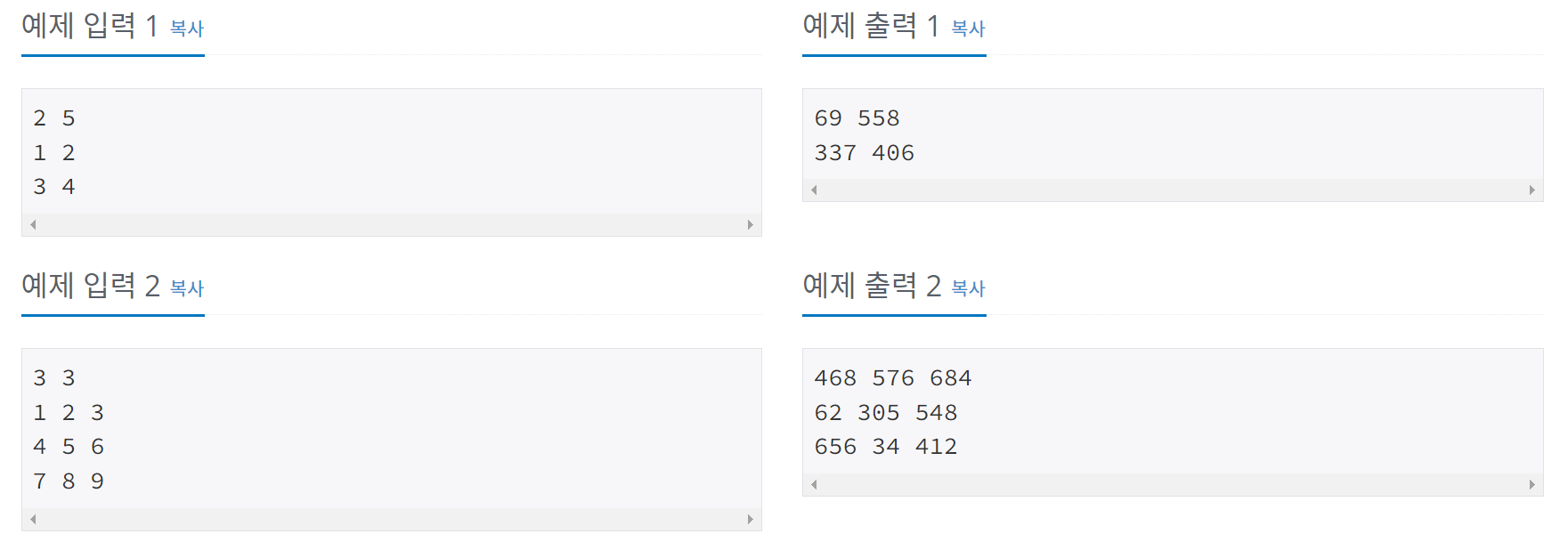 첫째 줄에 행렬의 크기 N과 B가 주어진다. (2 ≤ N ≤ 5, 1 ≤ B ≤ 100,000,000,000)