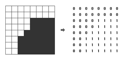 ํ๋ฐฑ ์์์ ์์ถํ์ฌ ํํํ๋ ๋ฐ์ดํฐ ๊ตฌ์กฐ๋ก ์ฟผ๋ ํธ๋ฆฌ(Quad Tree)๋ผ๋ ๋ฐฉ๋ฒ์ด ์๋ค. ํฐ ์ ์ ๋ํ๋ด๋ 0๊ณผ ๊ฒ์ ์ ์ ๋ํ๋ด๋ 1๋ก๋ง ์ด๋ฃจ์ด์ง ์์(2์ฐจ์ ๋ฐฐ์ด)์์ ๊ฐ์ ์ซ์์ ์ ๋ค์ด ํ ๊ณณ์ ๋ง์ด ๋ชฐ๋ ค์์ผ๋ฉด, ์ฟผ๋ ํธ๋ฆฌ์์๋ ์ด๋ฅผ ์์ถํ์ฌ ๊ฐ๋จํ ํํํ ์ ์๋ค.