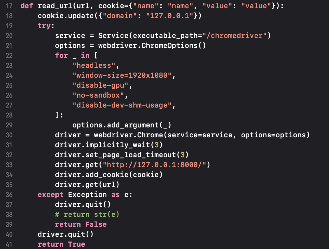 또한 read_url 함수를 통해 flag 값은 쿠키에 저장되는 것을 알 수 있다.