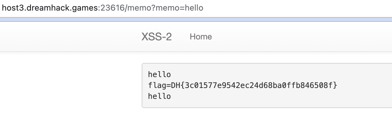 다음을 flag 페이지에 입력하면 memo 페이지에서 flag 값을 알 수 있다.