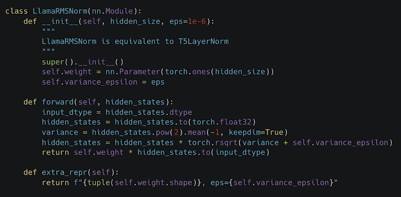 그래서 사용하는게 바로 아래의 RMSNorm 다만, RMSNorm은 학습이 되지 않는다