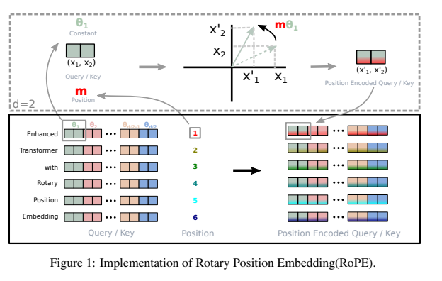 어텐션 레이어 한번 계산 될 때마다 로터리 임베딩의 위치정보를 같이 계산해주면서 상대적인 정보와 절대적인 정보를 같이 이해하도록 함.