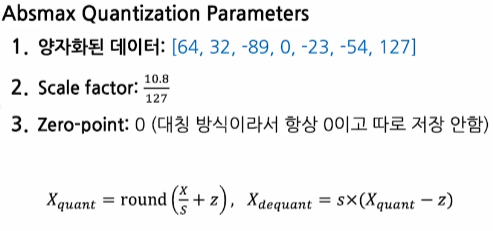 absmax 같은 경우에는 어차피 0이라 zero-point를 저장하지 않는다.