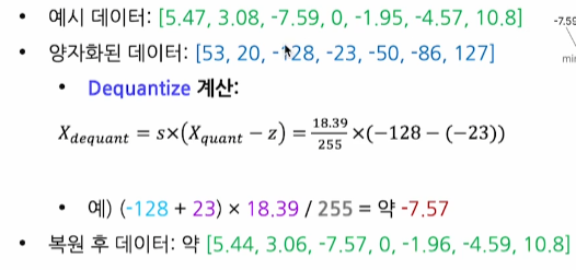 | Zero-point Quantization | 최대-최소의 차이 | 비대칭 | 비대칭 분포인 경우 | 기준점(0점)이 비정상적일 경우 성능이 떨어질 수 있음 |