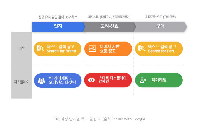 각 단계 별 목표가 차별화 된다면 이를 위해 활용할 퍼포먼스 채널과 매체도 단계 별로 달라지게 된다.