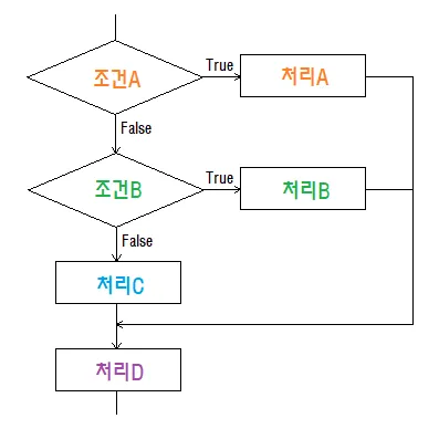 참이면 처리 B를 실행하고 이후 조건은 실행되지 않는다.