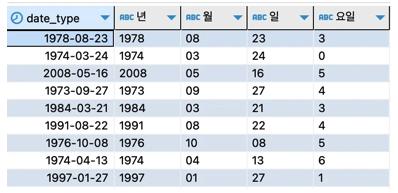 date type을 date_format을 이용해서 년,월,일,요일로 조회하기