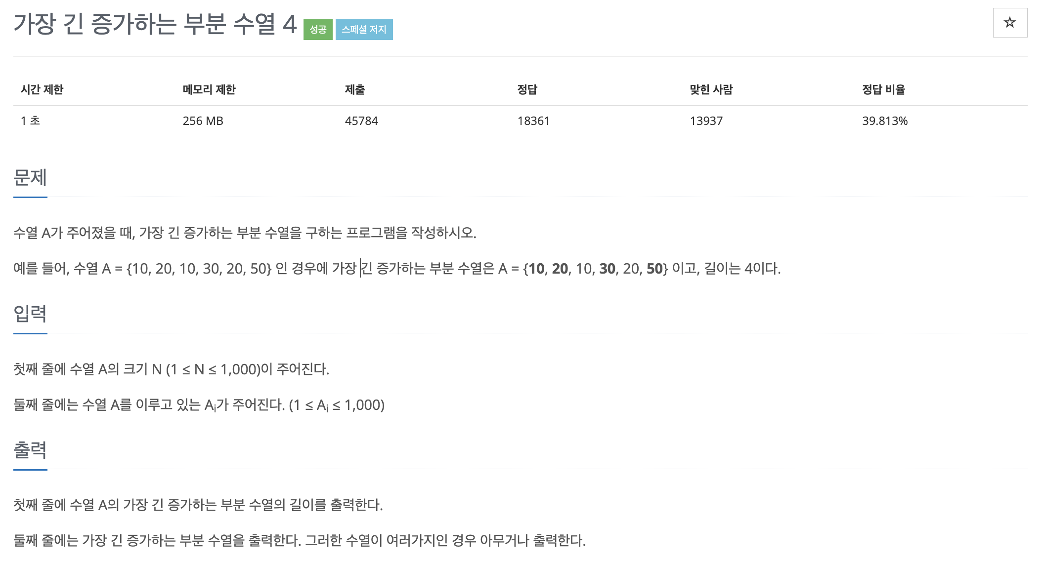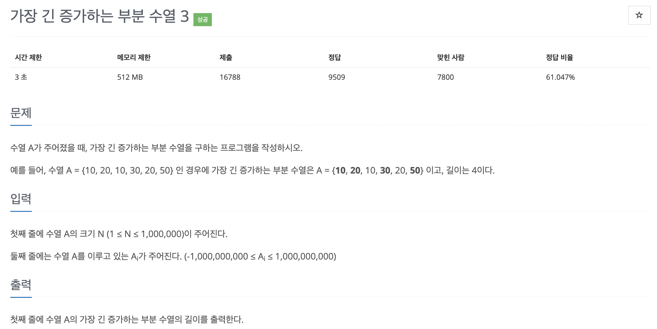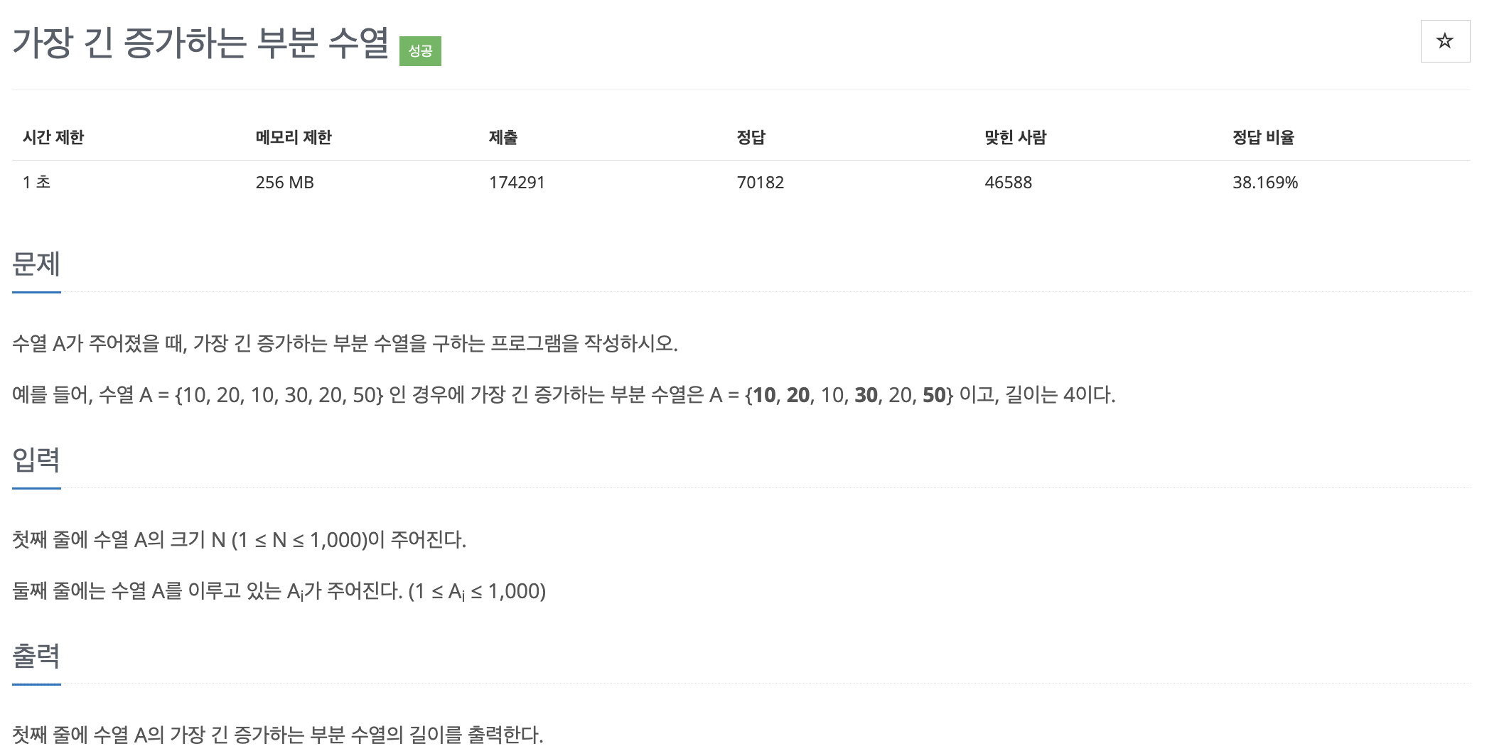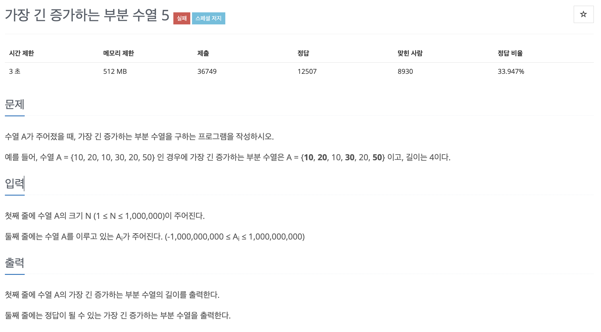 LIS에서 다이나믹 프로그래밍을 사용하는 이유를 알아봅시다. 다음은 백준에 있는 LIS 유형 중 가장 난이도가 낮은 문제입니다.