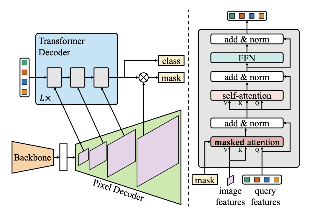- Masked attention 을 통해서 추론한 segments 주변의 localized features 에 attention 을 제한함