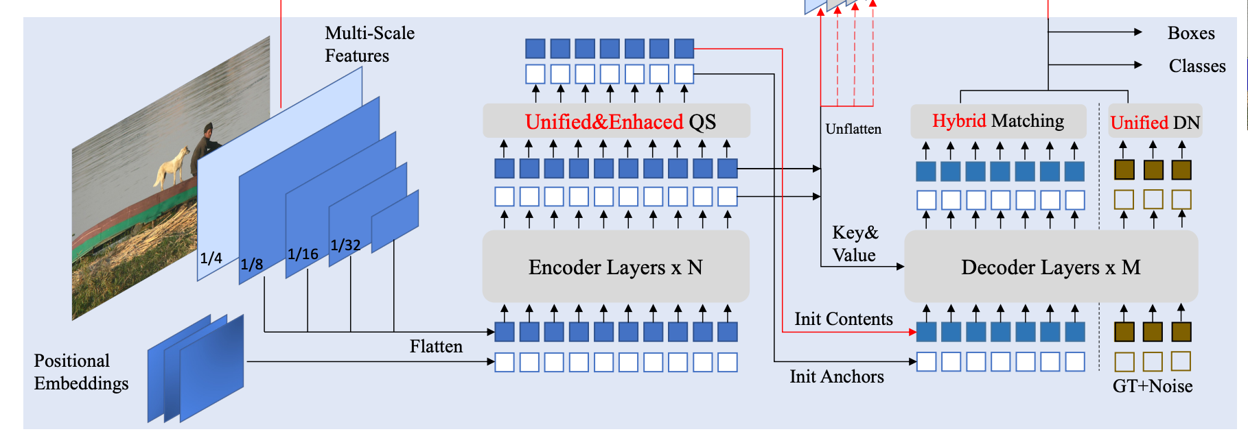 - decoder 의 positional query 를 초기화하기 위해 mixed query scheme 과 box gradient back-propagation 을 향상 시키기 위해 look-forward-twice 방법을 제안함