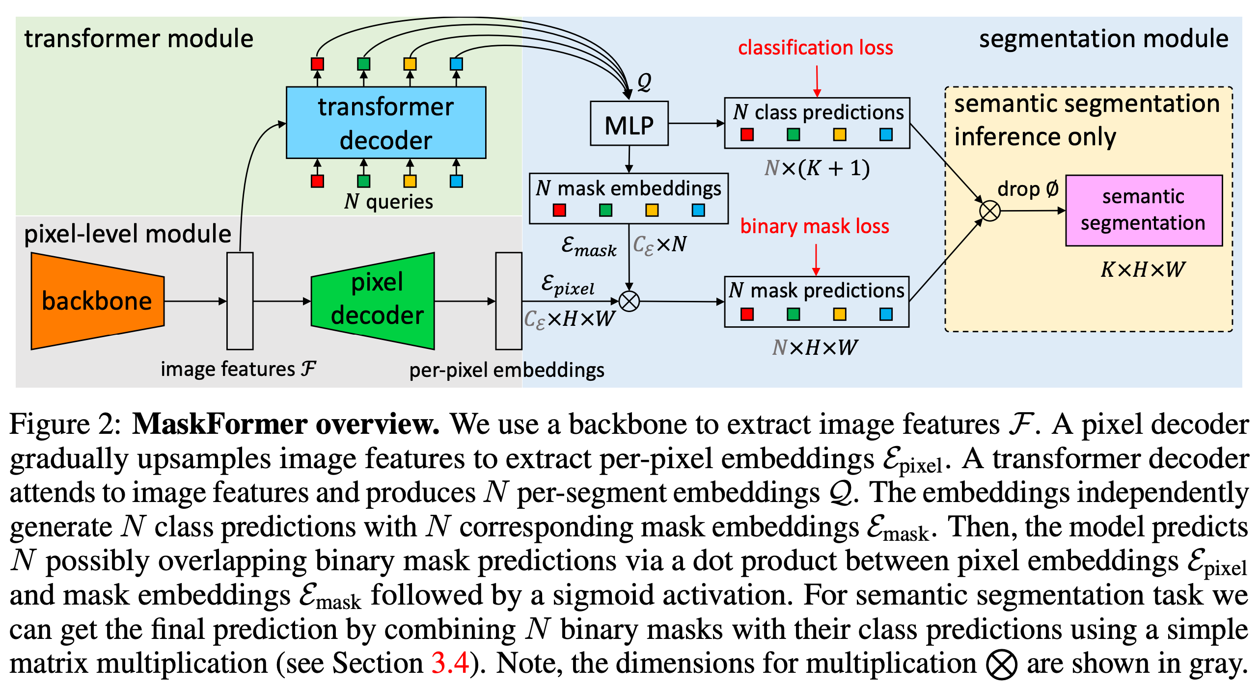 mask classification 은 semantic, instance segmentation 에 적용할 수 있도록 같은 associated class에 대해 다수의 마스크 추론 결과를 허용함