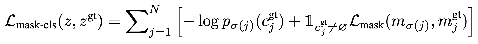 학습하는 동안, Lmask−cls loss는 cross entropy classification loss 와 각각의 예측된 segment 를 위한 이진화 마스크 loss 인 Lmask 를 합침