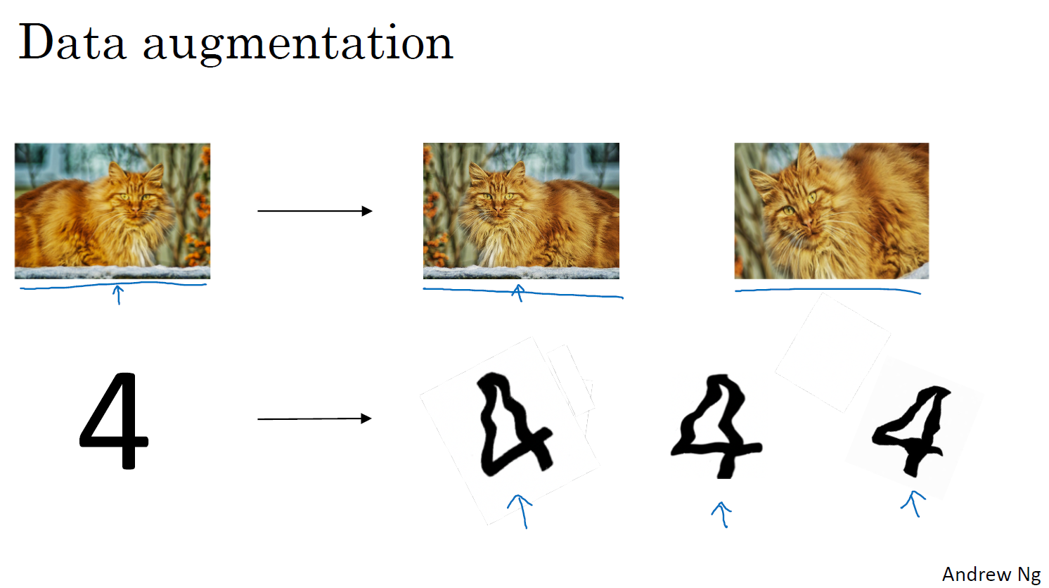 위 피피티는 데이터 증강이라고 한다. 원하는 데이터 수가 부족할 때 사용하는 방법이다. 완전히 새로운 고양이 이미지를 추가하는 것보다는 도움이 되지 않지만 대안으로 좋은 방법이다.