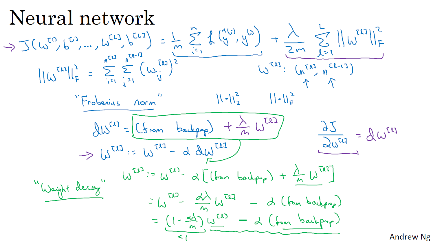 L2 정규화는 가장일반적인 유형의 정규화이다.다른 사람들이 L1 정규화에대해 얘기하는것을 들어본 적이 있을거에요 그리고 그것은 이 L2 노름대신에 더하였을 때 입니다