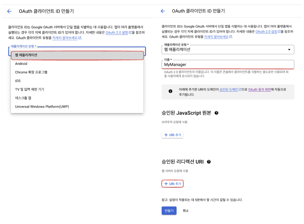 ๋ค์ API > ์ฌ์ฉ์ ์ธ์ฆ ์ ๋ณด ํ์ด์ง๋ก ์ด๋ํ์ฌ OAuth ํด๋ผ์ด์ธํธ ID๋ฅผ ์์ฑํฉ๋๋ค.