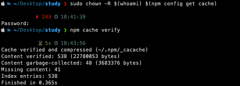 λ€μμΌλ‘ λλ²μ§Έ λ°©λ²μΈ npm cache verify