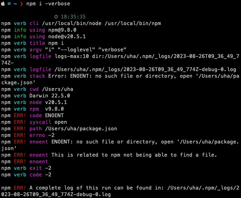μ΄λ¬ν κ²½μ° λ§λλ μλ¬λ‘npm install -verbose