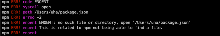 λ Ήμ΄λΌκ³ νλ€.npm ERR! code ENOENT μ€λ₯λ©μμ§λ₯Ό λ³Ό μ μμλ€. νμΌμ΄λ λλ ν 리λ₯Ό μ°Ύμ μ μλ€λ μ€λ₯λ‘, μ‘΄μ¬νμ§ μλ νμΌμ΄λ λλ ν 리μ μ κ·Όνλ €κ³ μλνλ€λ μ€λ₯μ΄λ€. λ΄ κ²½μ° package.json