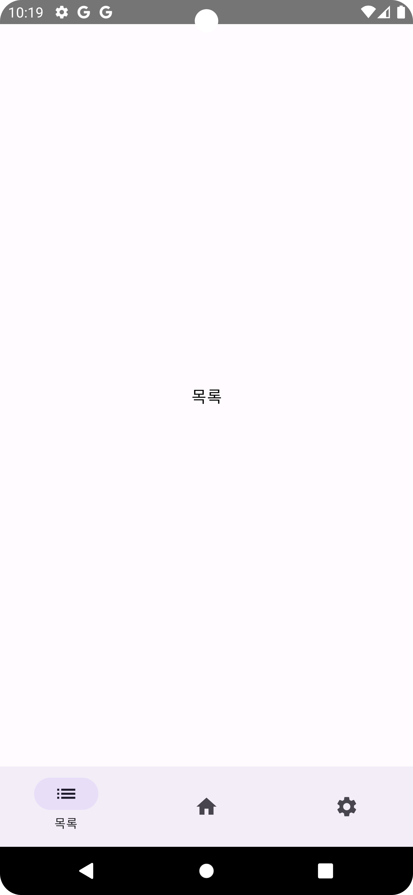 여기까지 Bottom Navigation 을 구현했다. 이제 홈 화면에서 + 버튼을 누르면 또 다른 화면으로 이동시키려고 한다. 또, 상단에 백버튼을 배치해 홈 화면으로 다시 돌아가도록 구현하겠다.