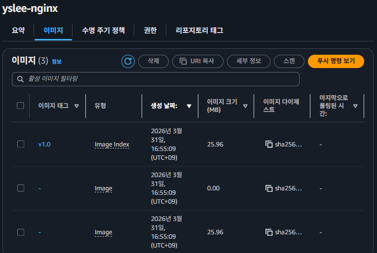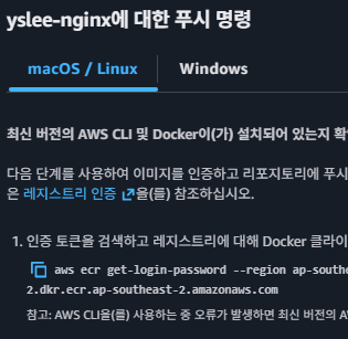 docker tag yslee-nginx:v1.0 <<PRIVATE-REPOSITORY-URI>>