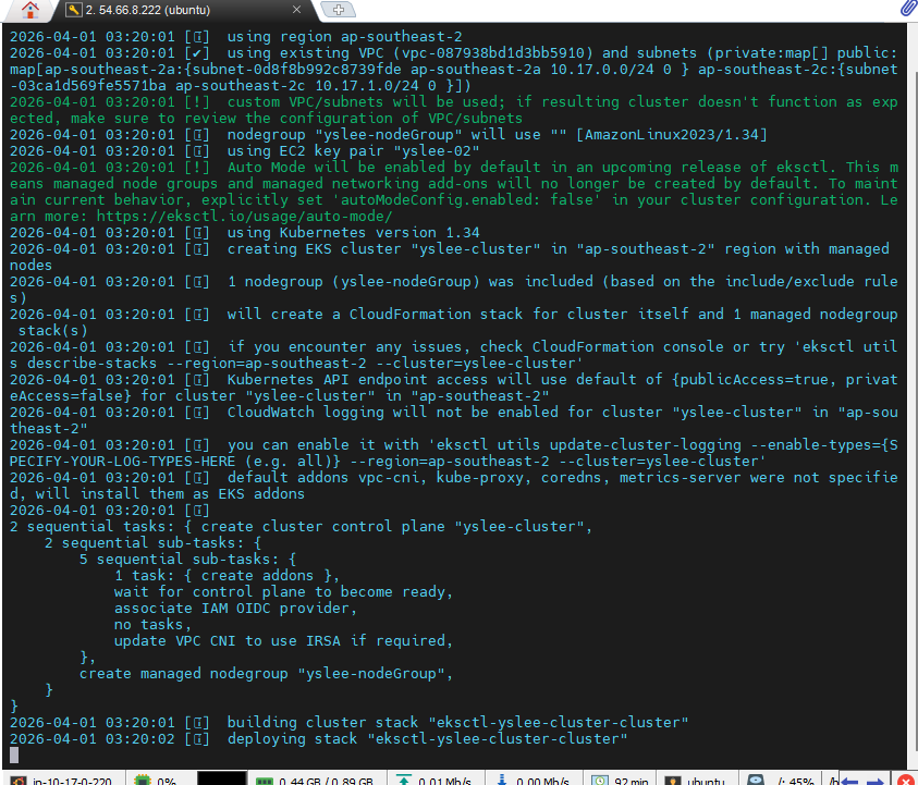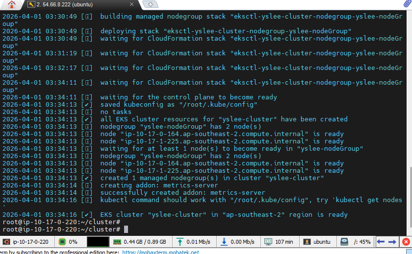 eksctl delete cluster --refgion=ap-southeast-2 --name=yslee-cluster