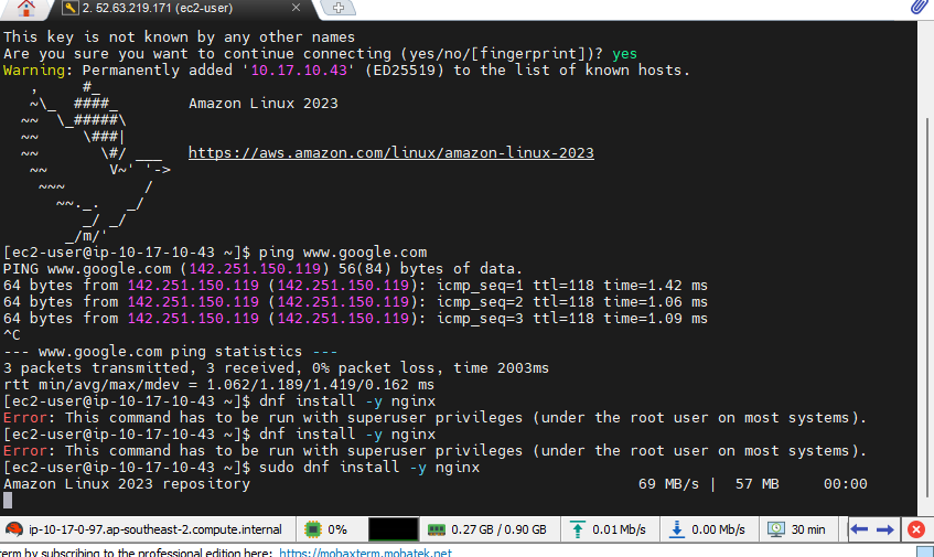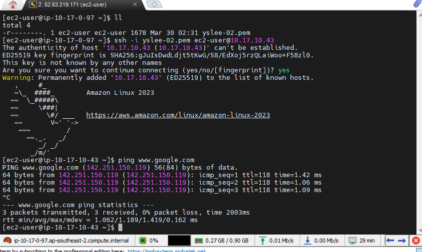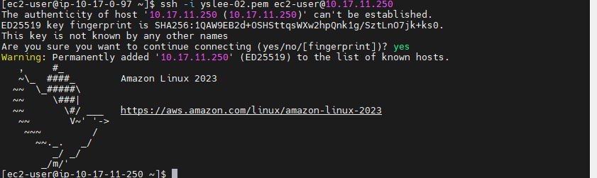 ssh -i yslee-02.pem yslee-02.pem ec2-user@10.17.10.43